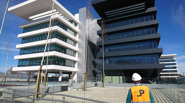 Pinturas PINCOR dando los últimos retoques al Edificio Helios situado en Calle Vía de los Poblados, 1. MADRID Edificios de alta eficiencia energética LEED PLATINUM. Constructora DRAGADOS.